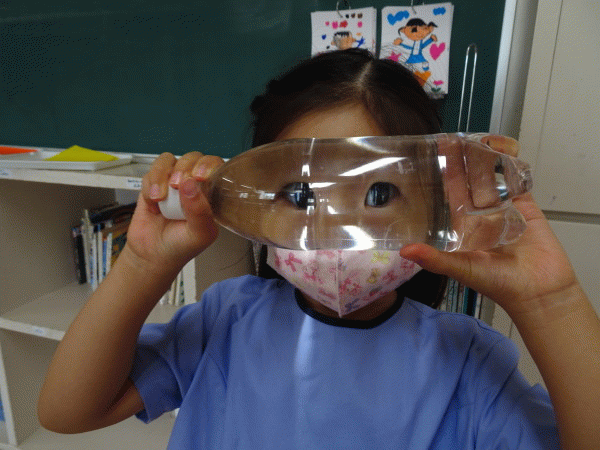 先生の目が大きくなったり、周りのものが逆さまに見えたりと、子ども達は大盛り上がり!!