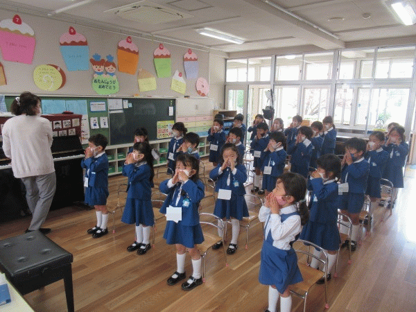 待ちに待った幼稚園に、少し大きめの制服に袖を通した新入園児の子どもたちが登園してきました♪
