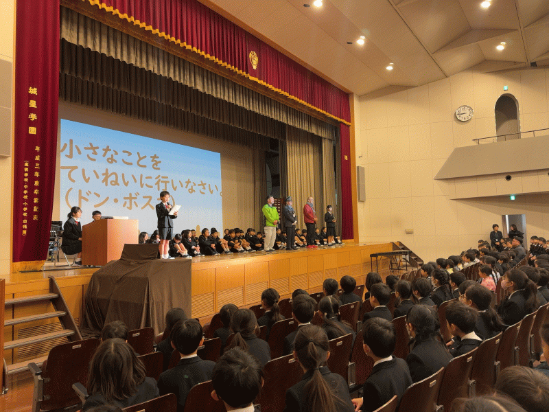 週末は勤労感謝の日です。城星学園小学校の様々なところで働いてくださっている方に、日ごろの感謝を全校児童からお伝えしました。