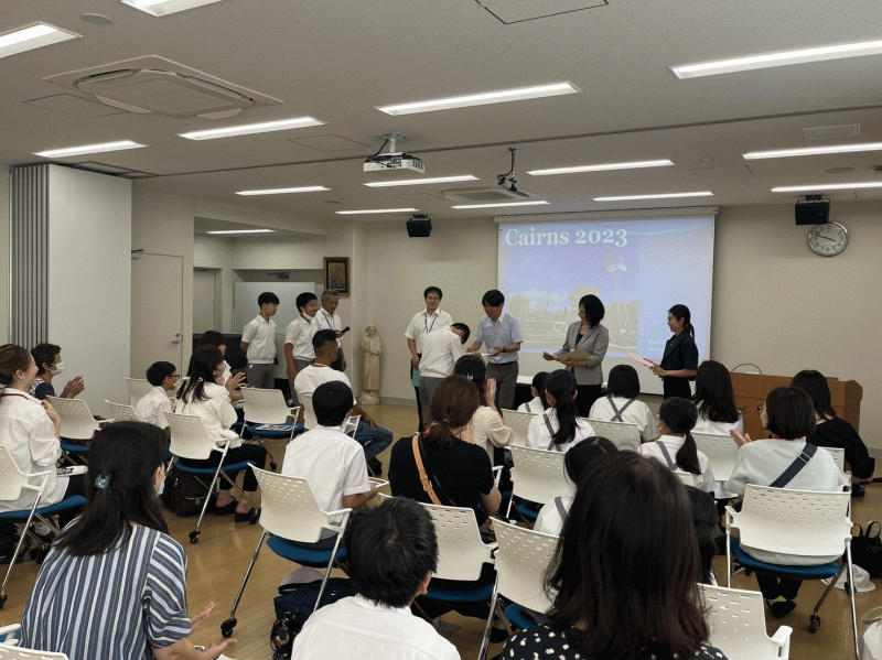全 2994 件(全599ページ) 過去のページもご覧いただけます ⇒ 前へ 101 | 102 | 103 | 104 | 105 | 次へ 2023/9/22 もうすぐ秋休み 前期も残すところあと2日です。春からの約半年で、子どもたちは心も体も大きく成長しました。 4年生 図工科 新聞紙を使って、さまざまな形を作りました。 平面から立体をつくるために、工夫を凝らしました。 4年生 図工科 新聞紙を使って、さまざまな形を作りました。 平面から立体をつくるために、工夫を凝らしました。 まだまだ子どもたちの成長に出会えそうです! まだまだ子どもたちの成長に出会えそうです! もうすぐ秋休み 2023/9/22 前期も残すところあと2日です。春からの約半年で、子どもたちは心も体も大きく成長しました。 4年生 図工科 新聞紙を使って、さまざまな形を作りました。 平面から立体をつくるために、工夫を凝らしました。 4年生 図工科 新聞紙を使って、さまざまな形を作りました。 平面から立体をつくるために、工夫を凝らしました。 まだまだ子どもたちの成長に出会えそうです! まだまだ子どもたちの成長に出会えそうです! 2023/9/21 みんなと一緒に 今日の児童の様子です。 2年生 生活科 大根の種を植えました。 大きくて美味しい大根を収穫できますように! 2年生 生活科 大根の種を植えました。 大きくて美味しい大根を収穫できますように! 6年生 総合 10月の「長崎平和と祈りの旅」に向けて、学年集会を男女別に行いました。 旅先で、さまざまなことや人へ心を向けることができますように。 6年生 総合 10月の「長崎平和と祈りの旅」に向けて、学年集会を男女別に行いました。 旅先で、さまざまなことや人へ心を向けることができますように。 1年生 図画工作科 さあ、何を制作しているでしょう? 1年生 図画工作科 さあ、何を制作しているでしょう? 「すきまちゃん」のお家を作っています。 さまざまな材料を用いて、素敵なお家が完成したようです。 「すきまちゃん」のお家を作っています。 さまざまな材料を用いて、素敵なお家が完成したようです。 今日も一日みんなで仲良く過ごせました! 今日も一日みんなで仲良く過ごせました! おまけ 6年生 家庭科 身の回りのものを手洗いしました。 おまけ 6年生 家庭科 身の回りのものを手洗いしました。 みんなと一緒に 2023/9/21 今日の児童の様子です。 2年生 生活科 大根の種を植えました。 大きくて美味しい大根を収穫できますように! 2年生 生活科 大根の種を植えました。 大きくて美味しい大根を収穫できますように! 6年生 総合 10月の「長崎平和と祈りの旅」に向けて、学年集会を男女別に行いました。 旅先で、さまざまなことや人へ心を向けることができますように。 6年生 総合 10月の「長崎平和と祈りの旅」に向けて、学年集会を男女別に行いました。 旅先で、さまざまなことや人へ心を向けることができますように。 1年生 図画工作科 さあ、何を制作しているでしょう? 1年生 図画工作科 さあ、何を制作しているでしょう? 「すきまちゃん」のお家を作っています。 さまざまな材料を用いて、素敵なお家が完成したようです。 「すきまちゃん」のお家を作っています。 さまざまな材料を用いて、素敵なお家が完成したようです。 今日も一日みんなで仲良く過ごせました! 今日も一日みんなで仲良く過ごせました! おまけ 6年生 家庭科 身の回りのものを手洗いしました。 おまけ 6年生 家庭科 身の回りのものを手洗いしました。 2023/9/20 ケアンズホームステイ報告会 先日、夏休みにあったケアンズホームステイの報告会を行いました。 参加した子どもたちだけでなく、保護者にもお越しいただきました。 写真を見ながら、ホームステイの振り返りを行ったり、代表者が作文を読んだりしました。 先日、夏休みにあったケアンズホームステイの報告会を行いました。 参加した子どもたちだけでなく、保護者にもお越しいただきました。 写真を見ながら、ホームステイの振り返りを行ったり、代表者が作文を読んだりしました。 最後にサプライズで、子どもたちから教員へ寄せ書きのプレゼントがありました。 子どもたち、教員にとって忘れられない思い出と経験になりました。 最後にサプライズで、子どもたちから教員へ寄せ書きのプレゼントがありました。 子どもたち、教員にとって忘れられない思い出と経験になりました。 ケアンズホームステイ報告会 2023/9/20 先日、夏休みにあったケアンズホームステイの報告会を行いました。 参加した子どもたちだけでなく、保護者にもお越しいただきました。 写真を見ながら、ホームステイの振り返りを行ったり、代表者が作文を読んだりしました。 先日、夏休みにあったケアンズホームステイの報告会を行いました。 参加した子どもたちだけでなく、保護者にもお越しいただきました。 写真を見ながら、ホームステイの振り返りを行ったり、代表者が作文を読んだりしました。 最後にサプライズで、子どもたちから教員へ寄せ書きのプレゼントがありました。 子どもた