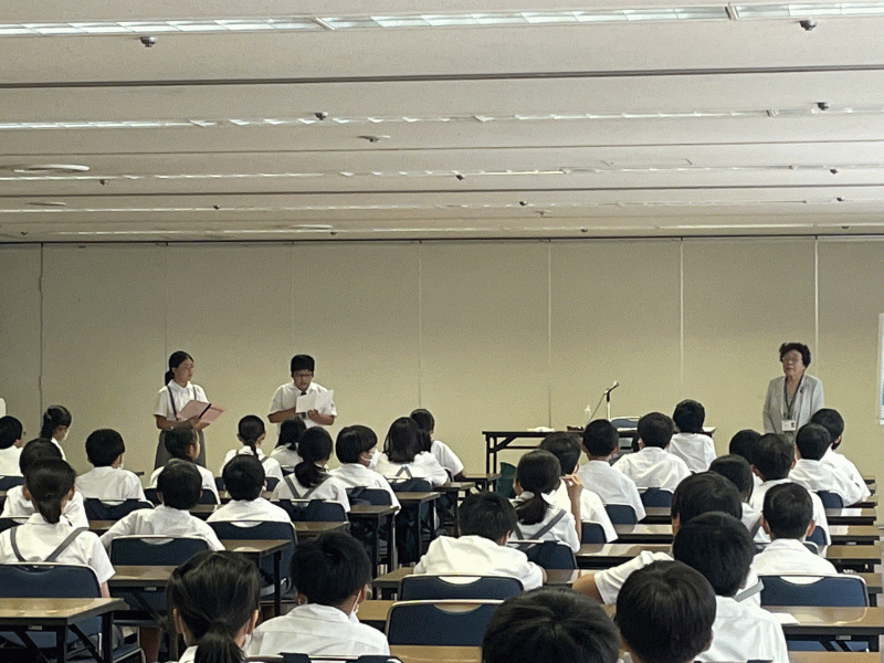 全校児童の前で作文を読み終えた後、どのクラスからも大きな拍手がきこえました。