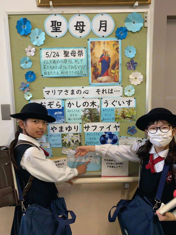 全 2994 件(全599ページ) 過去のページもご覧いただけます ⇒ 前へ 116 | 117 | 118 | 119 | 120 | 次へ 2023/5/15 新しく着任された先生方 Part4 新しく城星学園小学校にお迎えした先生方をご紹介します。6年生の体育を担当します。 常原 健吾先生(体育) 常原 健吾先生(体育) 新しく着任された先生方 Part4 2023/5/15 新しく城星学園小学校にお迎えした先生方をご紹介します。6年生の体育を担当します。 常原 健吾先生(体育) 常原 健吾先生(体育) 2023/5/15 徳の花 3日目 徳の花 3日目 「危険や災いから守ってください」 見えないところで、多くの方々が子どもたちを守ってくださっています。 何事に対しても、感謝の気持ちを大切に毎日過ごしてほしいと思います。 徳の花 3日目 「危険や災いから守ってください」 見えないところで、多くの方々が子どもたちを守ってくださっています。 何事に対しても、感謝の気持ちを大切に毎日過ごしてほしいと思います。 徳の花 3日目 2023/5/15 徳の花 3日目 「危険や災いから守ってください」 見えないところで、多くの方々が子どもたちを守ってくださっています。 何事に対しても、感謝の気持ちを大切に毎日過ごしてほしいと思います。 徳の花 3日目 「危険や災いから守ってください」 見えないところで、多くの方々が子どもたちを守ってくださっています。 何事に対しても、感謝の気持ちを大切に毎日過ごしてほしいと思います。 2023/5/12 徳の花2日目 徳の花2日目 「マリアさまの力強い助けを示してください」 毎日お祈りをする子どもたち。 マリアさまがいつも近くにいてくださることを、改めて感じることができたようです。 いつもより心をこめてお祈りをする児童が多かったです。 徳の花2日目 「マリアさまの力強い助けを示してください」 毎日お祈りをする子どもたち。 マリアさまがいつも近くにいてくださることを、改めて感じることができたようです。 いつもより心をこめてお祈りをする児童が多かったです。 また、方面別下校指導を行いました。同じ方面を登下校する児童ごとに集合し、登下校のルールをしっかり共有しました。 また、方面別下校指導を行いました。同じ方面を登下校する児童ごとに集合し、登下校のルールをしっかり共有しました。 ぶつけたつもりがなくても大きいランドセルを背負うと、少し動くだけでだれかにぶつかってしまうこと、保護者の車の送迎について子どもたちの言葉で伝えることなど指導しました。 ぶつけたつもりがなくても大きいランドセルを背負うと、少し動くだけでだれかにぶつかってしまうこと、保護者の車の送迎について子どもたちの言葉で伝えることなど指導しました。 しっかりとルールを守って、安全に登校してほしいです。 しっかりとルールを守って、安全に登校してほしいです。 徳の花2日目 2023/5/12 徳の花2日目 「マリアさまの力強い助けを示してください」 毎日お祈りをする子どもたち。 マリアさまがいつも近くにいてくださることを、改めて感じることができたようです。 いつもより心をこめてお祈りをする児童が多かったです。 徳の花2日目 「マリアさまの力強い助けを示してください」 毎日お祈りをする子どもたち。 マリアさまがいつも近くにいてくださることを、改めて感じることができたようです。 いつもより心をこめてお祈りをする児童が多かったです。 また、方面別下校指導を行いました。同じ方面を登下校する児童ごとに集合し、登下校のルールをしっかり共有しました。 また、方面別下校指導を行いました。同じ方面を登下校する児童ごとに集合し、登下校のルールをしっかり共有しました。 ぶつけたつもりがなくても大きいランドセルを背負うと、少し動くだけでだれかにぶつかってしまうこと、保護者の車の送迎について子どもたちの言葉で伝えることなど指導しました。 ぶつけたつもりがなくても大きいランドセルを背負うと、少し動くだけでだれかにぶつかってしまうこと、保護者の車の送迎について子どもたちの言葉で伝えることなど指導しました。 しっかりとルールを守って、安全に登校してほしいです。 しっかりとルールを守って、安全に登校してほしいです。 2023/5/11 徳の花 1日目 5月24日の「聖母祭」に向けて、子どもたちは善い行いを積み重ね、徳の花を咲かせる「徳の花」期間が始まりました。この期間「扶助者聖母にご保護を願う祈り」について学びます。 徳の花1日目 「マリアさま、あなたに身をゆだねます」 自分の力を誰かのために使うことは、難しいことかもしれません。 しかし、子どもたちにそれができる人になってほしいというお話がありました。 徳の花1日目 「マリアさま、あなたに身をゆだねます」 自分の力を誰かのために使うことは、難しいことかもしれません。 しかし、子どもたちにそれができる人になってほしいというお話がありました。 今月は、聖母月です。 聖歌「マリアさまのこころ」、歌詞の一部を掲示しました。 だれでも自由に歌詞作りができる