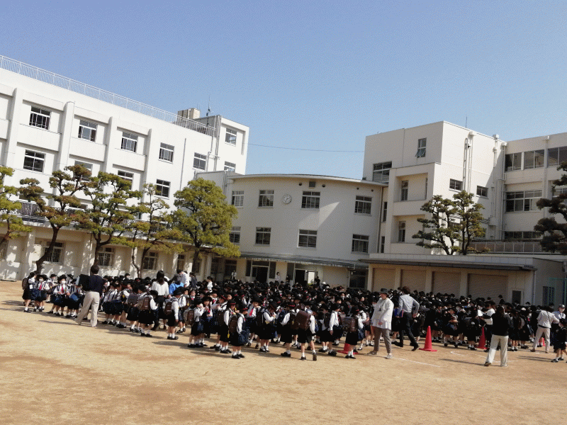 本日2時間目終わりに、全校種合同の避難訓練を行いました。
