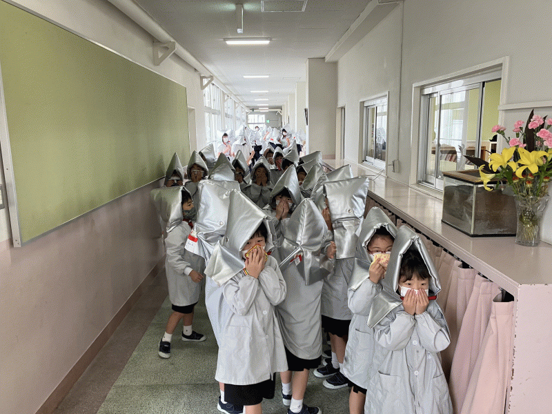 有事に備えての訓練に、先生の指示を聞いて行動できる姿に頼もしさを感じました。