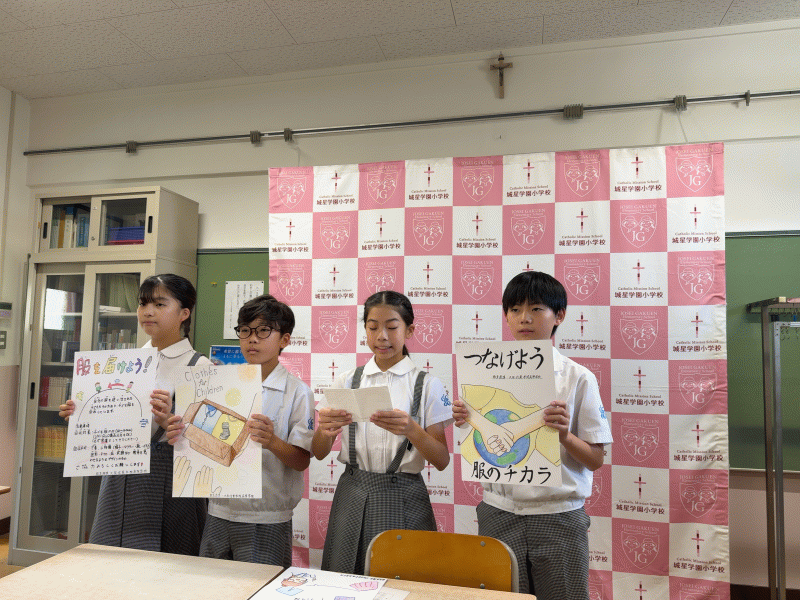 難民の方に服をお届けする活動で、城星学園小学校もこのプロジェクトに参加をします。