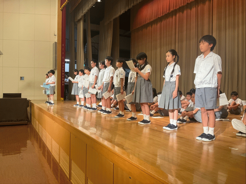 前期児童会総会を行い、前期の振り返りと後期への目標を全校生徒で共有をしました。