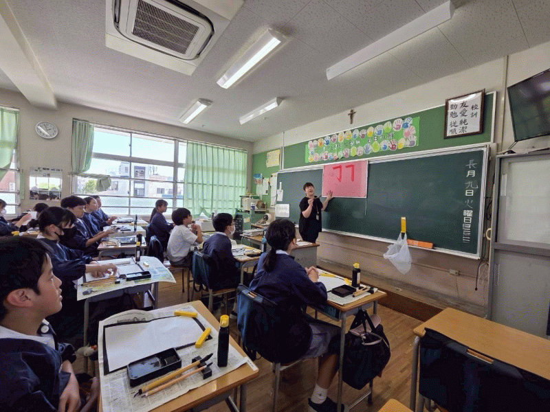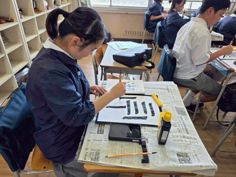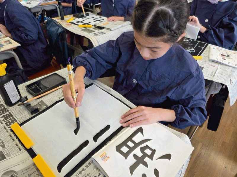 筆を待ち、半紙に向かう姿は真剣そのもので、その姿から六年生の大きな成長を感じることができました。