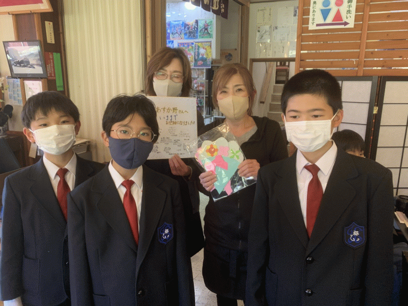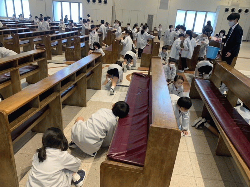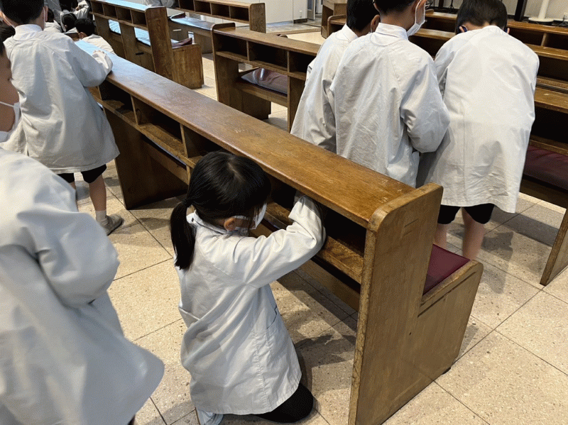 全 2994 件(全599ページ) 過去のページもご覧いただけます ⇒ 前へ 136 | 137 | 138 | 139 | 140 | 次へ 2022/12/13 低学年奉仕活動 本日,1年生と2年生が,奉仕活動の一環として,大聖堂の清掃に行きました。 先月ミサに与った大聖堂の椅子を拭いたり,床の雑巾がけをしたりしました。 小さな体を精一杯使って,大聖堂を綺麗にすることができました。 本日,1年生と2年生が,奉仕活動の一環として,大聖堂の清掃に行きました。 先月ミサに与った大聖堂の椅子を拭いたり,床の雑巾がけをしたりしました。 小さな体を精一杯使って,大聖堂を綺麗にすることができました。 低学年奉仕活動 2022/12/13 本日,1年生と2年生が,奉仕活動の一環として,大聖堂の清掃に行きました。 先月ミサに与った大聖堂の椅子を拭いたり,床の雑巾がけをしたりしました。 小さな体を精一杯使って,大聖堂を綺麗にすることができました。 本日,1年生と2年生が,奉仕活動の一環として,大聖堂の清掃に行きました。 先月ミサに与った大聖堂の椅子を拭いたり,床の雑巾がけをしたりしました。 小さな体を精一杯使って,大聖堂を綺麗にすることができました。 2022/12/12 3年生社会科学習「スーパーの秘密」 本日,3年生社会科の授業の一環で,城星学園の近くにある,スーパー「ライフ」の方に来ていただきました。売るための工夫や,食品ロスを減らすための取り組みについてお話をしていただきました。 初めて聞く工夫がたくさんあり,子どもたちは一生懸命話を聞いていました。また,たくさんの質問に,とても丁寧に答えていただきました。 本日,3年生社会科の授業の一環で,城星学園の近くにある,スーパー「ライフ」の方に来ていただきました。売るための工夫や,食品ロスを減らすための取り組みについてお話をしていただきました。 初めて聞く工夫がたくさんあり,子どもたちは一生懸命話を聞いていました。また,たくさんの質問に,とても丁寧に答えていただきました。 3年生社会科学習「スーパーの秘密」 2022/12/12 本日,3年生社会科の授業の一環で,城星学園の近くにある,スーパー「ライフ」の方に来ていただきました。売るための工夫や,食品ロスを減らすための取り組みについてお話をしていただきました。 初めて聞く工夫がたくさんあり,子どもたちは一生懸命話を聞いていました。また,たくさんの質問に,とても丁寧に答えていただきました。 本日,3年生社会科の授業の一環で,城星学園の近くにある,スーパー「ライフ」の方に来ていただきました。売るための工夫や,食品ロスを減らすための取り組みについてお話をしていただきました。 初めて聞く工夫がたくさんあり,子どもたちは一生懸命話を聞いていました。また,たくさんの質問に,とても丁寧に答えていただきました。 2022/12/9 5年生奈良歴史学習 本日,5年生は奈良へ歴史学習に行きました。 これまで調べてきた歴史的な石造物やお寺を実際に見て,体験的に学んでいました。 また,これまで城星学園小学校の奈良歴史学習ではたびたびお世話になっていた「あすか野」さんがお店を閉めるとのことで,今までの感謝を込めて,寄せ書きと折り紙で作った花束を渡しました。「あすか野」さん,長年,本当にありがとうございました。 本日,5年生は奈良へ歴史学習に行きました。 これまで調べてきた歴史的な石造物やお寺を実際に見て,体験的に学んでいました。 また,これまで城星学園小学校の奈良歴史学習ではたびたびお世話になっていた「あすか野」さんがお店を閉めるとのことで,今までの感謝を込めて,寄せ書きと折り紙で作った花束を渡しました。「あすか野」さん,長年,本当にありがとうございました。 5年生奈良歴史学習 2022/12/9 本日,5年生は奈良へ歴史学習に行きました。 これまで調べてきた歴史的な石造物やお寺を実際に見て,体験的に学んでいました。 また,これまで城星学園小学校の奈良歴史学習ではたびたびお世話になっていた「あすか野」さんがお店を閉めるとのことで,今までの感謝を込めて,寄せ書きと折り紙で作った花束を渡しました。「あすか野」さん,長年,本当にありがとうございました。 本日,5年生は奈良へ歴史学習に行きました。 これまで調べてきた歴史的な石造物やお寺を実際に見て,体験的に学んでいました。 また,これまで城星学園小学校の奈良歴史学習ではたびたびお世話になっていた「あすか野」さんがお店を閉めるとのことで,今までの感謝を込めて,寄せ書きと折り紙で作った花束を渡しました。「あすか野」さん,長年,本当にありがとうございました。 2022/12/8 大阪くらしの今昔館 3年生が校外学習で,大阪くらしの今昔館に行きました。江戸時代の大阪の町並みの中を,子どもたちは夢中になって見学しました。 3年生が校外学習で,大阪くらしの今昔館に行きました。江戸時代の大阪の町並みの中を,子どもたちは夢中になって見学しました。 床に描かれている昔の地図の中から,城星学園を必死になって探しました。見つけると,満面の笑みで指をさしていました。 今日の体験を今後の学習に繋げ