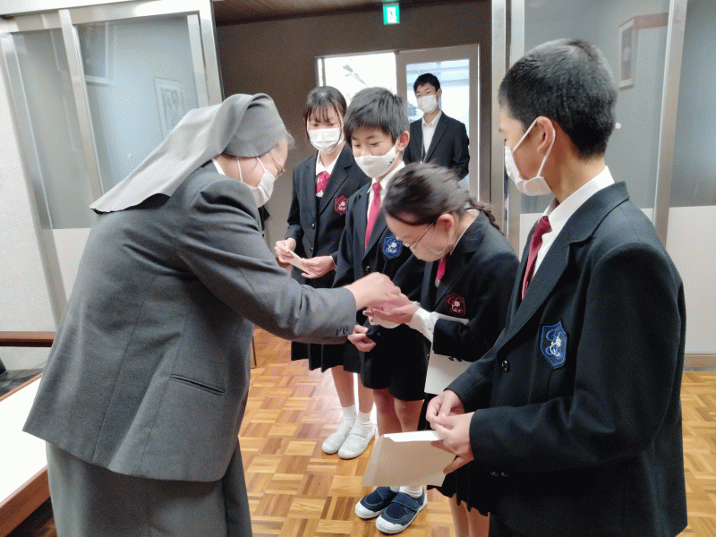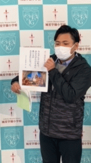 全 2994 件(全599ページ) 過去のページもご覧いただけます ⇒ 前へ 136 | 137 | 138 | 139 | 140 | 次へ 2022/12/6 5年生奉仕活動 本日,3時間目に,5年生が奉仕活動の一環として,学校回りを清掃しました。 清掃活動を通して,だれかのために何かをすることのすがすがしさを感じてくれたように思います。 本日,3時間目に,5年生が奉仕活動の一環として,学校回りを清掃しました。 清掃活動を通して,だれかのために何かをすることのすがすがしさを感じてくれたように思います。 5年生奉仕活動 2022/12/6 本日,3時間目に,5年生が奉仕活動の一環として,学校回りを清掃しました。 清掃活動を通して,だれかのために何かをすることのすがすがしさを感じてくれたように思います。 本日,3時間目に,5年生が奉仕活動の一環として,学校回りを清掃しました。 清掃活動を通して,だれかのために何かをすることのすがすがしさを感じてくれたように思います。 2022/12/5 チャレンジゼミ 高学年の児童が,星光学院の先生に算数を教えてもらいました。 「水平線までの距離を求めてみよう」という題目で,日常生活と関連させた授業でした。 高学年の児童が,星光学院の先生に算数を教えてもらいました。 「水平線までの距離を求めてみよう」という題目で,日常生活と関連させた授業でした。 電卓を使用しながら,真剣な表情で問題に取り組んでいました。 今日学んだことを,今後に活かしてほしいと思います。 電卓を使用しながら,真剣な表情で問題に取り組んでいました。 今日学んだことを,今後に活かしてほしいと思います。 チャレンジゼミ 2022/12/5 高学年の児童が,星光学院の先生に算数を教えてもらいました。 「水平線までの距離を求めてみよう」という題目で,日常生活と関連させた授業でした。 高学年の児童が,星光学院の先生に算数を教えてもらいました。 「水平線までの距離を求めてみよう」という題目で,日常生活と関連させた授業でした。 電卓を使用しながら,真剣な表情で問題に取り組んでいました。 今日学んだことを,今後に活かしてほしいと思います。 電卓を使用しながら,真剣な表情で問題に取り組んでいました。 今日学んだことを,今後に活かしてほしいと思います。 2022/12/2 みことば朝会 今月のみことばは, 「今日ダビデの町で、あなたがたのために救い主がお生まれになった。」です。 今月のみことばは, 「今日ダビデの町で、あなたがたのために救い主がお生まれになった。」です。 学園正面のマリア像が,ライトアップされています。 クリスマスが近づき,クリスマスページェントの配役も決まりつつあります。 気忙しくなりますが,すべての人が健康で安心して毎日を過ごすことができるようお祈りしています。 学園正面のマリア像が,ライトアップされています。 クリスマスが近づき,クリスマスページェントの配役も決まりつつあります。 気忙しくなりますが,すべての人が健康で安心して毎日を過ごすことができるようお祈りしています。 みことば朝会 2022/12/2 今月のみことばは, 「今日ダビデの町で、あなたがたのために救い主がお生まれになった。」です。 今月のみことばは, 「今日ダビデの町で、あなたがたのために救い主がお生まれになった。」です。 学園正面のマリア像が,ライトアップされています。 クリスマスが近づき,クリスマスページェントの配役も決まりつつあります。 気忙しくなりますが,すべての人が健康で安心して毎日を過ごすことができるようお祈りしています。 学園正面のマリア像が,ライトアップされています。 クリスマスが近づき,クリスマスページェントの配役も決まりつつあります。 気忙しくなりますが,すべての人が健康で安心して毎日を過ごすことができるようお祈りしています。 2022/12/1 運営委員会の活動 今週は,東京から宮脇管区長様がいらっしゃっています。 運営委員会の児童が,宮脇管区長様にご挨拶と献金を渡しました。 温かい笑顔で70周年を祝福する言葉をかけていただき,児童は安心した様子でした。 今週は,東京から宮脇管区長様がいらっしゃっています。 運営委員会の児童が,宮脇管区長様にご挨拶と献金を渡しました。 温かい笑顔で70周年を祝福する言葉をかけていただき,児童は安心した様子でした。 また,中学年が奉仕活動として近隣の公園清掃を行いました。児童は,たくさんの落ち葉を両手いっぱいに抱えて,必死になって公園をきれいにしようと働きました。 また,中学年が奉仕活動として近隣の公園清掃を行いました。児童は,たくさんの落ち葉を両手いっぱいに抱えて,必死になって公園をきれいにしようと働きました。 こんなにたくさんの落ち葉を拾いました! こんなにたくさんの落ち葉を拾いました! 運営委員会の活動 2022/12/1 今週は,東京から宮脇管区長様がいらっしゃっています。 運営委員会の児童が,宮脇管区長様にご挨拶と献金を渡しました。 温かい笑顔で70周年を祝福する言葉をかけていただき,児童は安心した様子でした。 今週は,東京から宮脇管区長様がいらっしゃ