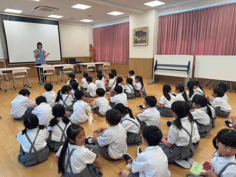 本日のお祈りの集いでは、「生まれてくる小さな命」「大切にされている命」について、先生からお話がありました。人は一人では、生きていけません。それはこれから生まれてくるお腹の中の赤ちゃんから、先生のような大人まで、人間みんな、ひとりでは生きていけません。