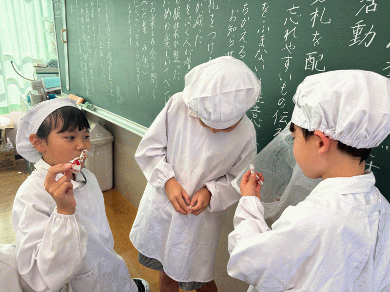 スクールランチでは、デザートにタルトがあります。タルトが入っていた袋は小さくして、捨てましょう!とクラスで決めています。