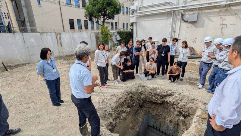 むかしむかし、海だった上町台地。今回の調査では、10万年前の地層から、当時の海の様子が見られたようです。カニの住処発見!