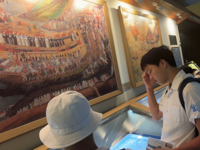 子どもたちは、歴史的にも価値のある資料の数々を真剣に見学していました。