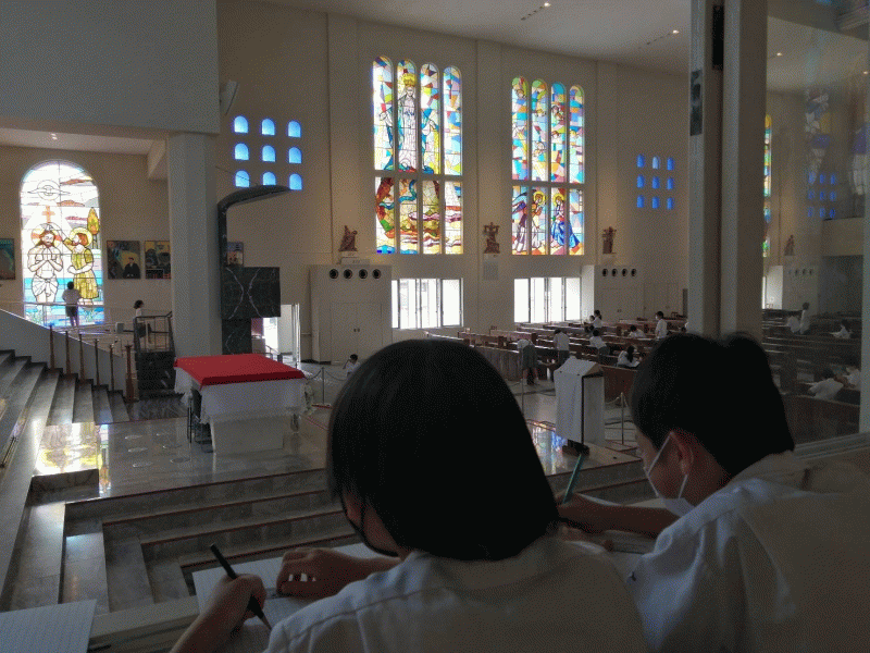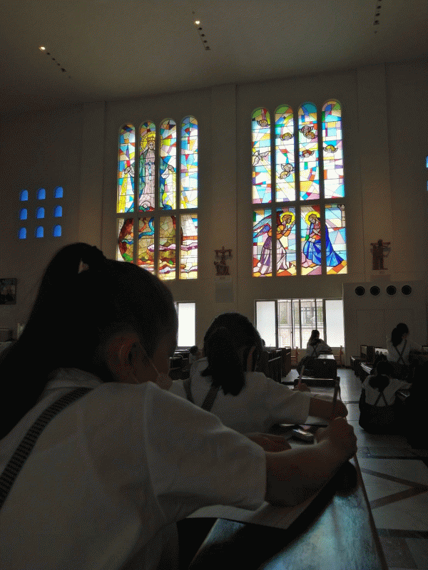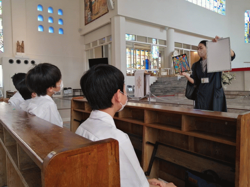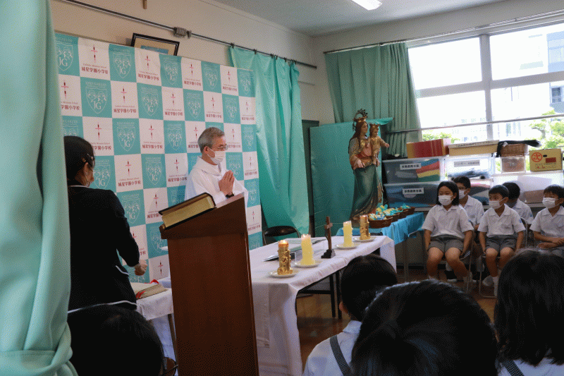 全 2996 件(全600ページ) 過去のページもご覧いただけます ⇒ 前へ 156 | 157 | 158 | 159 | 160 | 次へ 2022/5/26 久しぶりの大聖堂 6年生は1,2時間目に聖マリア大聖堂に行きました。 6年生は1,2時間目に聖マリア大聖堂に行きました。 熱心にステンドグラスの模写をしました。 熱心にステンドグラスの模写をしました。 子どもたちからは,「久しぶりに大聖堂に行けてよかったです。」や,「近くで見たらこんなにもたくさんの色が使われているんだとわかりました。」という感想が出ました。 子どもたちからは,「久しぶりに大聖堂に行けてよかったです。」や,「近くで見たらこんなにもたくさんの色が使われているんだとわかりました。」という感想が出ました。 久しぶりの大聖堂 2022/5/26 6年生は1,2時間目に聖マリア大聖堂に行きました。 6年生は1,2時間目に聖マリア大聖堂に行きました。 熱心にステンドグラスの模写をしました。 熱心にステンドグラスの模写をしました。 子どもたちからは,「久しぶりに大聖堂に行けてよかったです。」や,「近くで見たらこんなにもたくさんの色が使われているんだとわかりました。」という感想が出ました。 子どもたちからは,「久しぶりに大聖堂に行けてよかったです。」や,「近くで見たらこんなにもたくさんの色が使われているんだとわかりました。」という感想が出ました。 2022/5/25 学校探検 低学年は,学校探検を行いました。2年生が,1年生に職員室や特別教室などの場所,使い方について教えました。1年生がわかりやすいように,自分たちなりに言葉を選んで伝えている姿は,頼もしかったです。 低学年は,学校探検を行いました。2年生が,1年生に職員室や特別教室などの場所,使い方について教えました。1年生がわかりやすいように,自分たちなりに言葉を選んで伝えている姿は,頼もしかったです。 また,朝の放送で,学校外でも活躍している子どもたちの,表彰式を行いました。何かに一生懸命努力している姿は,素晴らしいです。様々な場所での活躍を今後も期待しています。 また,朝の放送で,学校外でも活躍している子どもたちの,表彰式を行いました。何かに一生懸命努力している姿は,素晴らしいです。様々な場所での活躍を今後も期待しています。 学校探検 2022/5/25 低学年は,学校探検を行いました。2年生が,1年生に職員室や特別教室などの場所,使い方について教えました。1年生がわかりやすいように,自分たちなりに言葉を選んで伝えている姿は,頼もしかったです。 低学年は,学校探検を行いました。2年生が,1年生に職員室や特別教室などの場所,使い方について教えました。1年生がわかりやすいように,自分たちなりに言葉を選んで伝えている姿は,頼もしかったです。 また,朝の放送で,学校外でも活躍している子どもたちの,表彰式を行いました。何かに一生懸命努力している姿は,素晴らしいです。様々な場所での活躍を今後も期待しています。 また,朝の放送で,学校外でも活躍している子どもたちの,表彰式を行いました。何かに一生懸命努力している姿は,素晴らしいです。様々な場所での活躍を今後も期待しています。 2022/5/24 書写 3年生は,毛筆の学習が始まりました。子どもたちは,用具の扱い方,筆使い,腕の使い方等について学びました。ますます丁寧になっていく,字の成長を楽しみにしています。 3年生は,毛筆の学習が始まりました。子どもたちは,用具の扱い方,筆使い,腕の使い方等について学びました。ますます丁寧になっていく,字の成長を楽しみにしています。 書写 2022/5/24 3年生は,毛筆の学習が始まりました。子どもたちは,用具の扱い方,筆使い,腕の使い方等について学びました。ますます丁寧になっていく,字の成長を楽しみにしています。 3年生は,毛筆の学習が始まりました。子どもたちは,用具の扱い方,筆使い,腕の使い方等について学びました。ますます丁寧になっていく,字の成長を楽しみにしています。 2022/5/23 聖母祭 学校で、聖母祭のミサを行いました。 マリア像前には、子どもたちが作成した「MOTHER MARY」の作品を飾っています。登校した子どもたちは、完成した作品の感想を伝え合っていました。 マリア像前には、子どもたちが作成した「MOTHER MARY」の作品を飾っています。登校した子どもたちは、完成した作品の感想を伝え合っていました。 テレビ放送を通して、神父様のお話を聴き、心をこめてお祈りをしたり聖歌を歌ったりしました。 テレビ放送を通して、神父様のお話を聴き、心をこめてお祈りをしたり聖歌を歌ったりしました。 子どもたちは落ち着いて、心の中で神さまとお話をしていました。 「徳の花」での学びをぜひ活用してほしいと思います。 子どもたちは落ち着いて、心の中で神さまとお話をしていました。 「徳の花」での学びをぜひ活用してほしいと思います。 聖母祭 2022/5/23 学校で、聖母祭のミサを行いました。 マリア像前には、子どもたちが作成した「MOTHER MARY」の作品を飾っています。登校した子どもたちは、完成した作品の感想を伝え合って