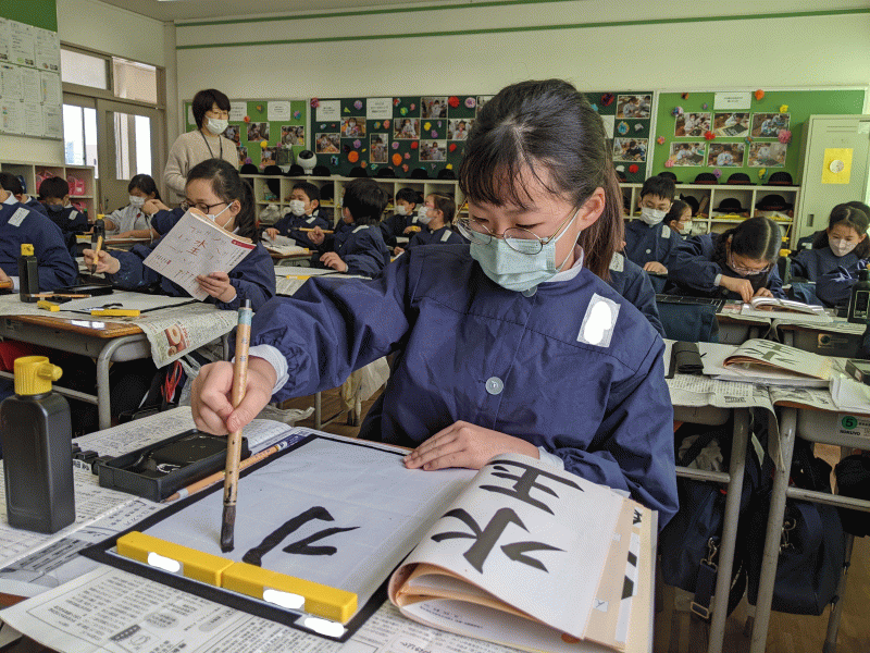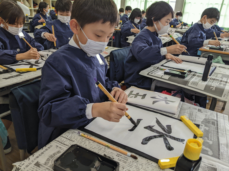 最初は慣れない筆に苦戦していましたが,今では「とめ,はね,はらい」をていねいに書けるようになりました。
