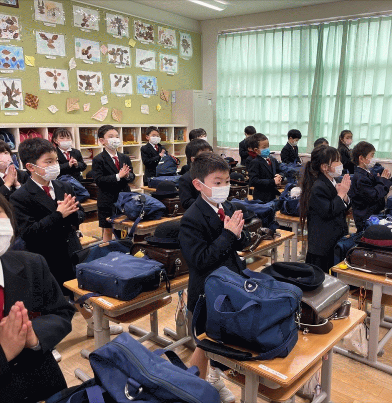 学校で1日学びを終えた子どもたち。終会時には必ずお祈りをします。
