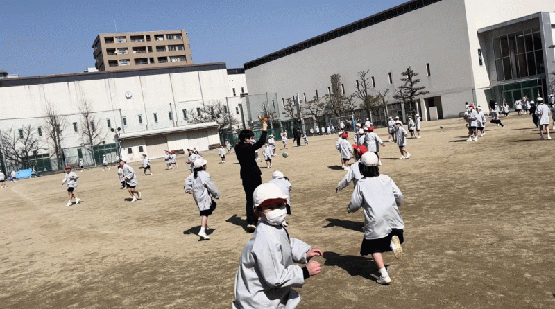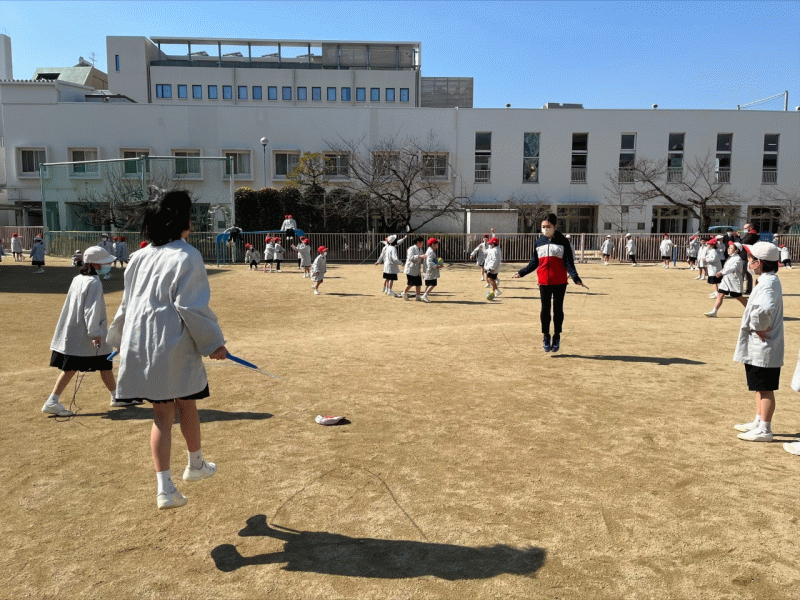 先生も子どもたちと同じようにグラウンドで過ごします。