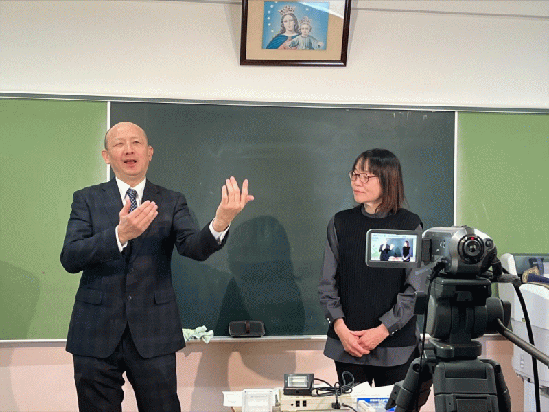 リモートにて手話教室を行いました。耳の不自由な方をお招きし,手話を交えてお話いただきました。