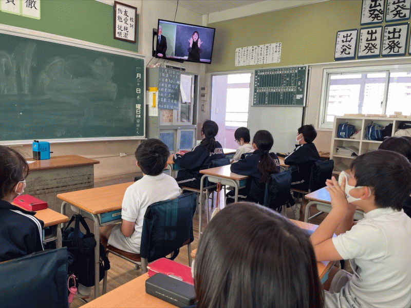 子どもたちも,「ありがとう」や「おはようございます」などをテレビ越しに手話でお伝えしました。
