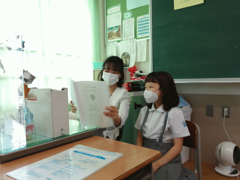 前期の成績が渡されました。あゆみを見て自分の成長を振り返ります。