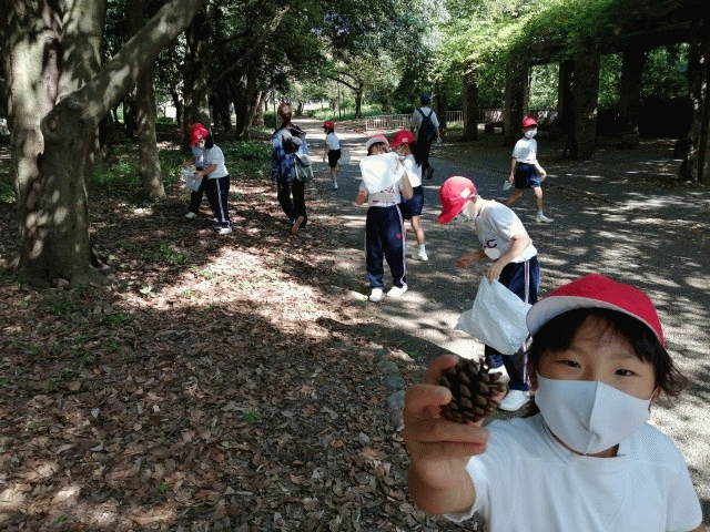 松ぼっくりや色とりどりの落ち葉を見つけることができました。