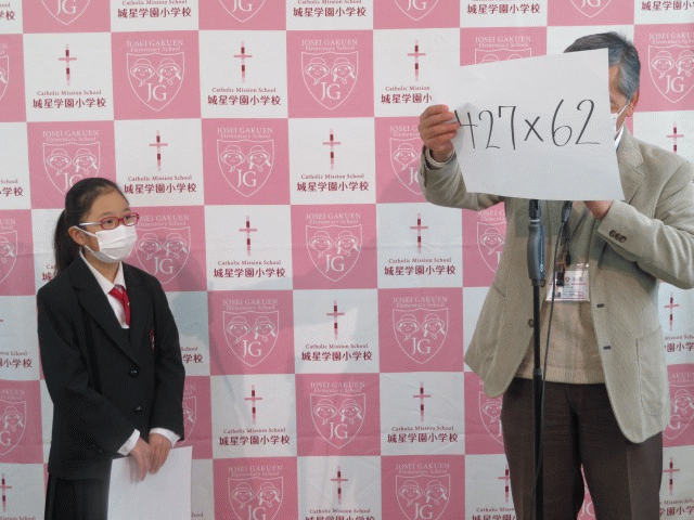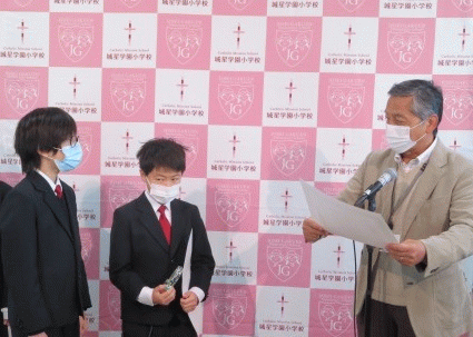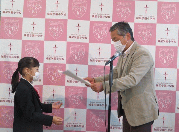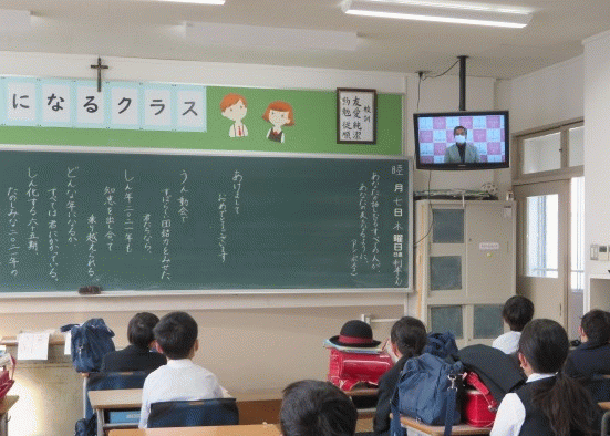 全 3004 件(全601ページ) 過去のページもご覧いただけます ⇒ 前へ 206 | 207 | 208 | 209 | 210 | 次へ 2021/1/7 2021年のスタート! 2021年初めての登校日です。 教室に入ると,黒板には先生からのメッセージが書かれています。 2021年初めての登校日です。 教室に入ると,黒板には先生からのメッセージが書かれています。 1月,2月,3月は学年の締めくくりです。 1月,2月,3月は学年の締めくくりです。 次の学年に向けて,より成長していける3か月になるといいですね。 次の学年に向けて,より成長していける3か月になるといいですね。 2021年のスタート! 2021/1/7 2021年初めての登校日です。 教室に入ると,黒板には先生からのメッセージが書かれています。 2021年初めての登校日です。 教室に入ると,黒板には先生からのメッセージが書かれています。 1月,2月,3月は学年の締めくくりです。 1月,2月,3月は学年の締めくくりです。 次の学年に向けて,より成長していける3か月になるといいですね。 次の学年に向けて,より成長していける3か月になるといいですね。 2020/12/22 今年最後の登校日 今年のクリスマスページェントは,各教室で密を避けるため事前にビデオ撮影したものを見ました。 今年のクリスマスページェントは,各教室で密を避けるため事前にビデオ撮影したものを見ました。 いつもと違う形ではありますが,イエス様が私たちのもとに来てくださる日をお祝いすることができました。 いつもと違う形ではありますが,イエス様が私たちのもとに来てくださる日をお祝いすることができました。 今年はいろんなことがいつも通りとはいかず,様々な困難がありましたが, 子どもたちは困難を乗り越え,一回りも二回りも大きく成長しました。 今年はいろんなことがいつも通りとはいかず,様々な困難がありましたが, 子どもたちは困難を乗り越え,一回りも二回りも大きく成長しました。 ご家庭で子どもたちを心身ともに支えてくださった保護者の皆様,本当にありがとうございました。 来年もよろしくお願いいたします。 ご家庭で子どもたちを心身ともに支えてくださった保護者の皆様,本当にありがとうございました。 来年もよろしくお願いいたします。 今年最後の登校日 2020/12/22 今年のクリスマスページェントは,各教室で密を避けるため事前にビデオ撮影したものを見ました。 今年のクリスマスページェントは,各教室で密を避けるため事前にビデオ撮影したものを見ました。 いつもと違う形ではありますが,イエス様が私たちのもとに来てくださる日をお祝いすることができました。 いつもと違う形ではありますが,イエス様が私たちのもとに来てくださる日をお祝いすることができました。 今年はいろんなことがいつも通りとはいかず,様々な困難がありましたが, 子どもたちは困難を乗り越え,一回りも二回りも大きく成長しました。 今年はいろんなことがいつも通りとはいかず,様々な困難がありましたが, 子どもたちは困難を乗り越え,一回りも二回りも大きく成長しました。 ご家庭で子どもたちを心身ともに支えてくださった保護者の皆様,本当にありがとうございました。 来年もよろしくお願いいたします。 ご家庭で子どもたちを心身ともに支えてくださった保護者の皆様,本当にありがとうございました。 来年もよろしくお願いいたします。 2020/12/21 子どもたちのタラントが輝きました! 放送朝会で表彰式を行いました。 絵画,水泳,漢字,暗算など,多方面で活躍した子どもたちが表彰されました。 放送朝会で表彰式を行いました。 絵画,水泳,漢字,暗算など,多方面で活躍した子どもたちが表彰されました。 防火・防災図画コンクール 佳作入選 2年A組 木下 澄玲さん 2年C組 北山 幹くん 防火・防災図画コンクール 佳作入選 2年A組 木下 澄玲さん 2年C組 北山 幹くん 水泳大会 入賞 3年A組 新藤 信仁くん 6年C組 新藤 燦奈さん 水泳大会 入賞 3年A組 新藤 信仁くん 6年C組 新藤 燦奈さん 漢字検定 最優秀賞 2級 6年C組 宮本 幸聖くん 優秀賞 3級 6年A組 柴田 芽依さん 優秀賞 3級 6年A組 芝 千夏さん 努力賞 3級 6年C組 山口 怜くん 努力賞 3級 6年C組 安川 法穂さん 漢字検定 最優秀賞 2級 6年C組 宮本 幸聖くん 優秀賞 3級 6年A組 柴田 芽依さん 優秀賞 3級 6年A組 芝 千夏さん 努力賞 3級 6年C組 山口 怜くん 努力賞 3級 6年C組 安川 法穂さん 暗算検定 3年A組 川島 るりさん 2021年もたくさんの子どもたちの活躍を楽しみにしています。 暗算検定 3年A組 川島 るりさん 2021年もたくさんの子どもたちの活躍を楽しみにしています。 子どもたちのタラントが輝きました! 2020/12/21 放送朝会で表彰式を行いました。 絵画,水泳,漢字,暗算など,多方面で活躍した子どもたちが表彰されました。 放送朝会で表彰式を行いました。 絵画,水泳,漢字,暗算など,多方面で活躍した子どもたちが表彰されました。 防火・防災図画コンクール 佳作入選 2年A組 木下 澄玲さん 2年C組 北山 幹くん 防火・防災図画コンクール 佳作入選 2年A組 木下 澄玲さん 2年C組 北山 幹くん 水泳大会 入賞 3年A組 新藤 信仁
