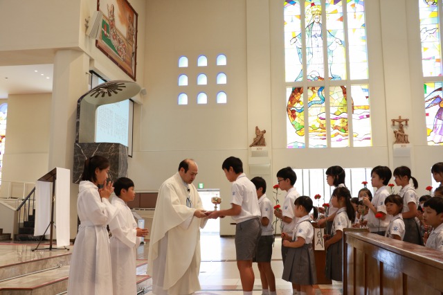 全 3004 件(全601ページ) 過去のページもご覧いただけます ⇒ 前へ 216 | 217 | 218 | 219 | 220 | 次へ 2020/5/29 感謝の手紙を届けました。 中学年の子どもたちが、新型コロナウイルス流行の中でも働いてくださっている方々に感謝の手紙を書きました。そのうち駅員さんに宛てて書いたものをお渡しすることができました。このほかの宛先の手紙も郵送しました。 感謝の手紙を届けました。 2020/5/29 中学年の子どもたちが、新型コロナウイルス流行の中でも働いてくださっている方々に感謝の手紙を書きました。そのうち駅員さんに宛てて書いたものをお渡しすることができました。このほかの宛先の手紙も郵送しました。 2020/5/28 募金のご協力ありがとうございました。 先日,皆さまよりいただいた日本ユニセフ協会の募金が24,667円集まりましたことをお知らせいたします。ご協力くださり,誠にありがとうございました。 先日,皆さまよりいただいた日本ユニセフ協会の募金が24,667円集まりましたことをお知らせいたします。ご協力くださり,誠にありがとうございました。 募金のご協力ありがとうございました。 2020/5/28 先日,皆さまよりいただいた日本ユニセフ協会の募金が24,667円集まりましたことをお知らせいたします。ご協力くださり,誠にありがとうございました。 先日,皆さまよりいただいた日本ユニセフ協会の募金が24,667円集まりましたことをお知らせいたします。ご協力くださり,誠にありがとうございました。 2020/5/27 漢字検定 個人賞・団体賞 3年B組山本真葵さんが,当該級よりも2級上の6級に満点合格を果たしましたので,日本漢字能力検定より個人の部で優秀賞を授与されました。おめでとうございます。 3年B組山本真葵さんが,当該級よりも2級上の6級に満点合格を果たしましたので,日本漢字能力検定より個人の部で優秀賞を授与されました。おめでとうございます。 また,本校も団体の部で奨励賞をいただきました。賞状と記念品を閲覧室の前に飾りました。 また,本校も団体の部で奨励賞をいただきました。賞状と記念品を閲覧室の前に飾りました。 みなさんの今年度の頑張りにも期待しています。 みなさんの今年度の頑張りにも期待しています。 漢字検定 個人賞・団体賞 2020/5/27 3年B組山本真葵さんが,当該級よりも2級上の6級に満点合格を果たしましたので,日本漢字能力検定より個人の部で優秀賞を授与されました。おめでとうございます。 3年B組山本真葵さんが,当該級よりも2級上の6級に満点合格を果たしましたので,日本漢字能力検定より個人の部で優秀賞を授与されました。おめでとうございます。 また,本校も団体の部で奨励賞をいただきました。賞状と記念品を閲覧室の前に飾りました。 また,本校も団体の部で奨励賞をいただきました。賞状と記念品を閲覧室の前に飾りました。 みなさんの今年度の頑張りにも期待しています。 みなさんの今年度の頑張りにも期待しています。 2020/5/26 聖母祭ミサ オンライン配信のお知らせ 明日9時より,聖母祭ミサのZoom配信を行います。本日配信したミマモルメにて,参加IDとパスワードを送付いたしました。分散登校の間においてもも,子どもたちと徳の花の期間をともに過ごしていただき誠にありがとうございました。聖母月の締めくくりとして,ぜひご家庭からミサにご参加ください。 明日9時より,聖母祭ミサのZoom配信を行います。本日配信したミマモルメにて,参加IDとパスワードを送付いたしました。分散登校の間においてもも,子どもたちと徳の花の期間をともに過ごしていただき誠にありがとうございました。聖母月の締めくくりとして,ぜひご家庭からミサにご参加ください。 聖母祭ミサ オンライン配信のお知らせ 2020/5/26 明日9時より,聖母祭ミサのZoom配信を行います。本日配信したミマモルメにて,参加IDとパスワードを送付いたしました。分散登校の間においてもも,子どもたちと徳の花の期間をともに過ごしていただき誠にありがとうございました。聖母月の締めくくりとして,ぜひご家庭からミサにご参加ください。 明日9時より,聖母祭ミサのZoom配信を行います。本日配信したミマモルメにて,参加IDとパスワードを送付いたしました。分散登校の間においてもも,子どもたちと徳の花の期間をともに過ごしていただき誠にありがとうございました。聖母月の締めくくりとして,ぜひご家庭からミサにご参加ください。 2020/5/25 6年生は授業が始まっています。 6年生は今日から授業が始まりました。国語や理科の実験に,真剣に取り組む様子を写真でお伝えします。 6年生は授業が始まっています。 2020/5/25 6年生は今日から授業が始まりました。国語や理科の実験に,真剣に取り組む様子を写真でお伝えします。 全 3004 件(全601ページ) 過去のページもご覧いただけます ⇒ 前へ 216 | 217 | 218 | 219 | 220 | 次へ