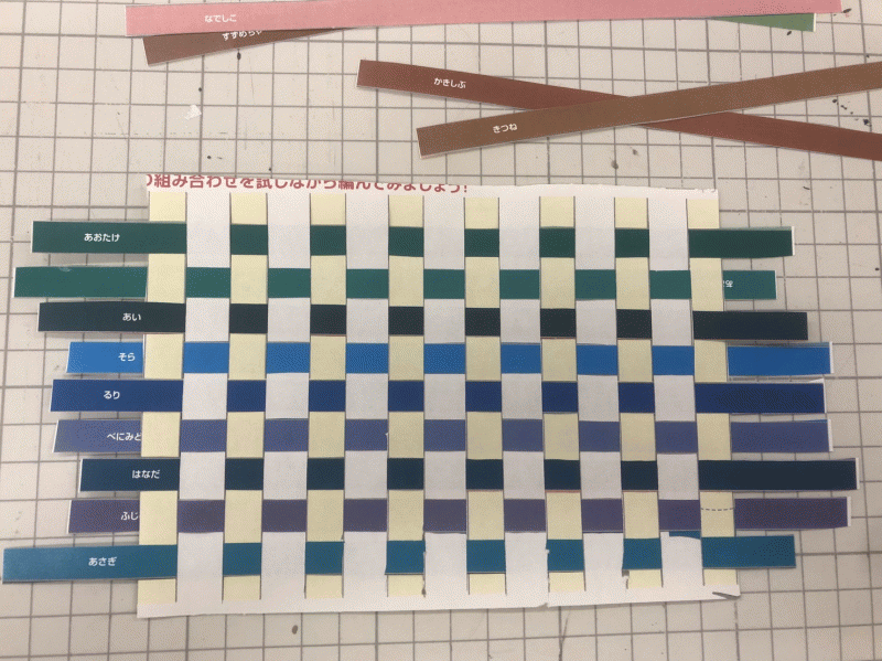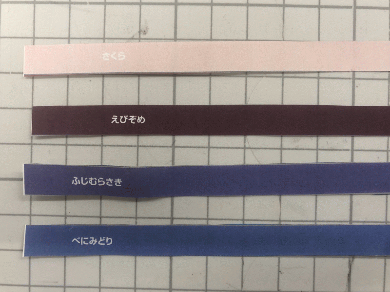このワークに使う色紙には、日本の伝統的な色が使われています。