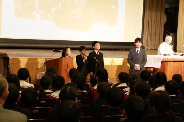 全 3004 件(全601ページ) 過去のページもご覧いただけます ⇒ 前へ 226 | 227 | 228 | 229 | 230 | 次へ 2020/1/31 ドン・ボスコの言葉に心を寄せて 1月31日は,本校の創立者ドン・ボスコの祝日です。子どもたちはこの日のためにドン・ボスコの言葉へ心を寄せ,自分の学校生活へ生かそうと徳の花を積んできました。 1月31日は,本校の創立者ドン・ボスコの祝日です。子どもたちはこの日のためにドン・ボスコの言葉へ心を寄せ,自分の学校生活へ生かそうと徳の花を積んできました。 「ファッチォ・イオ!」(ぼく・私がやります。)「小さなことでも,ゆっくりと,きちんとしなくてはなりません」「あなたが話しかけるすべての人が,あなたの友となるようにしなさい」子どもたちはこれらの言葉を大切にこの日を迎えました。 「ファッチォ・イオ!」(ぼく・私がやります。)「小さなことでも,ゆっくりと,きちんとしなくてはなりません」「あなたが話しかけるすべての人が,あなたの友となるようにしなさい」子どもたちはこれらの言葉を大切にこの日を迎えました。 また,ドン・ボスコはこんな言葉も残しています。「音楽の無い学校,それは魂の無い体]閉催の歌ではこの日限りの城星ビッグバンドが結成されました。 また,ドン・ボスコはこんな言葉も残しています。「音楽の無い学校,それは魂の無い体]閉催の歌ではこの日限りの城星ビッグバンドが結成されました。 ドン・ボスコの言葉に心を寄せて 2020/1/31 1月31日は,本校の創立者ドン・ボスコの祝日です。子どもたちはこの日のためにドン・ボスコの言葉へ心を寄せ,自分の学校生活へ生かそうと徳の花を積んできました。 1月31日は,本校の創立者ドン・ボスコの祝日です。子どもたちはこの日のためにドン・ボスコの言葉へ心を寄せ,自分の学校生活へ生かそうと徳の花を積んできました。 「ファッチォ・イオ!」(ぼく・私がやります。)「小さなことでも,ゆっくりと,きちんとしなくてはなりません」「あなたが話しかけるすべての人が,あなたの友となるようにしなさい」子どもたちはこれらの言葉を大切にこの日を迎えました。 「ファッチォ・イオ!」(ぼく・私がやります。)「小さなことでも,ゆっくりと,きちんとしなくてはなりません」「あなたが話しかけるすべての人が,あなたの友となるようにしなさい」子どもたちはこれらの言葉を大切にこの日を迎えました。 また,ドン・ボスコはこんな言葉も残しています。「音楽の無い学校,それは魂の無い体]閉催の歌ではこの日限りの城星ビッグバンドが結成されました。 また,ドン・ボスコはこんな言葉も残しています。「音楽の無い学校,それは魂の無い体]閉催の歌ではこの日限りの城星ビッグバンドが結成されました。 2020/1/25 関西私小連図工作品展 本日より、関西私小連図画工作展が開催されます。大阪府内の各私立小学校から出展されたたくさんの個性的な作品が出展されており、本校からは、12点の作品を展示いたしております。子どもたちのアートに出会える絶好の機会、ぜひ足をお運びください。日時: 2020年1月25日(土)12:00 〜 18:00 26日(日)10:30 〜 16:30場所: 大阪国際交流センター・1Fギャラリー 大阪市天王寺区上本町8-2-6 本日より、関西私小連図画工作展が開催されます。大阪府内の各私立小学校から出展されたたくさんの個性的な作品が出展されており、本校からは、12点の作品を展示いたしております。子どもたちのアートに出会える絶好の機会、ぜひ足をお運びください。日時: 2020年1月25日(土)12:00 〜 18:00 26日(日)10:30 〜 16:30場所: 大阪国際交流センター・1Fギャラリー 大阪市天王寺区上本町8-2-6 関西私小連図工作品展 2020/1/25 本日より、関西私小連図画工作展が開催されます。大阪府内の各私立小学校から出展されたたくさんの個性的な作品が出展されており、本校からは、12点の作品を展示いたしております。子どもたちのアートに出会える絶好の機会、ぜひ足をお運びください。日時: 2020年1月25日(土)12:00 〜 18:00 26日(日)10:30 〜 16:30場所: 大阪国際交流センター・1Fギャラリー 大阪市天王寺区上本町8-2-6 本日より、関西私小連図画工作展が開催されます。大阪府内の各私立小学校から出展されたたくさんの個性的な作品が出展されており、本校からは、12点の作品を展示いたしております。子どもたちのアートに出会える絶好の機会、ぜひ足をお運びください。日時: 2020年1月25日(土)12:00 〜 18:00 26日(日)10:30 〜 16:30場所: 大阪国際交流センター・1Fギャラリー 大阪市天王寺区上本町8-2-6 2020/1/23 お姉さん凄い・・・ 最近6年生の有志が、休み時間に音楽室で琴を練習しています。 今日は本学園で学ぶ中学1年生のお姉さんが琴を演奏してくださいました。。 今日は本学園で学ぶ中学1年生のお姉さんが琴を演奏してくださいました。。 う、うまい。。。度肝を抜かれました。城星学園中高にもすごい才能を持った生徒がいますね。ありがとうございました。6年生のいい刺激になり、その後の練習にますます力が入っています。 う、うまい。。
