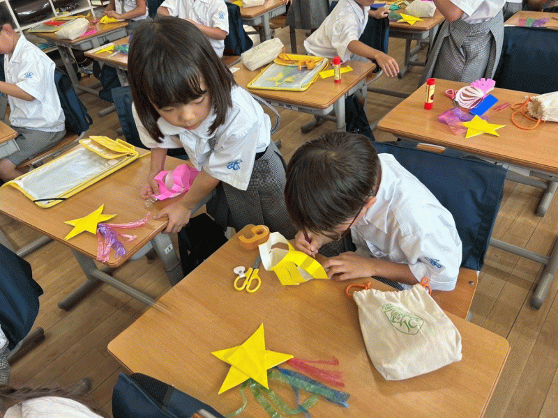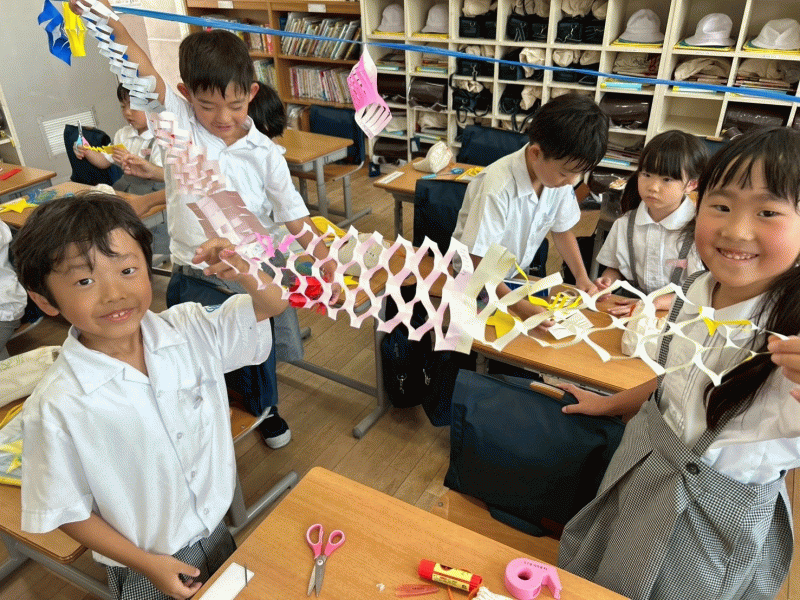 一年生、二年生の教室では7月7日の七夕に向けていろいろな飾りつくりをしました。