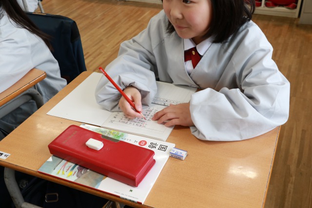 全 3007 件(全602ページ) 過去のページもご覧いただけます ⇒ 前へ 271 | 272 | 273 | 274 | 275 | 次へ 2019/4/12 1年生交通安全教室 運動場に道路が出現! 東警察署の方が,1年生に道路での歩き方やルール,マナーを教えてくださいました。 東警察署の方が,1年生に道路での歩き方やルール,マナーを教えてくださいました。 横断歩道を渡るときには,左右を確認! 横断歩道を渡るときには,左右を確認! 入学式から自分の力で新しい通学路を歩いてきた1年生のみんなは,登下校の最中安全に過ごすことができるよう,警察の方のお話に一生懸命耳を傾けました。 入学式から自分の力で新しい通学路を歩いてきた1年生のみんなは,登下校の最中安全に過ごすことができるよう,警察の方のお話に一生懸命耳を傾けました。 実際の車道を想定して,安全確認もしっかりと。 実際の車道を想定して,安全確認もしっかりと。 警察の方から丁寧な説明を受け,みんな真剣な面持ちです。 警察の方から丁寧な説明を受け,みんな真剣な面持ちです。 東警察署の皆様に,きちんとお礼のご挨拶をすることができました。次回は3年生の自転車講習でもお世話になります。 東警察署の皆様に,きちんとお礼のご挨拶をすることができました。次回は3年生の自転車講習でもお世話になります。 1年生交通安全教室 2019/4/12 運動場に道路が出現! 東警察署の方が,1年生に道路での歩き方やルール,マナーを教えてくださいました。 東警察署の方が,1年生に道路での歩き方やルール,マナーを教えてくださいました。 横断歩道を渡るときには,左右を確認! 横断歩道を渡るときには,左右を確認! 入学式から自分の力で新しい通学路を歩いてきた1年生のみんなは,登下校の最中安全に過ごすことができるよう,警察の方のお話に一生懸命耳を傾けました。 入学式から自分の力で新しい通学路を歩いてきた1年生のみんなは,登下校の最中安全に過ごすことができるよう,警察の方のお話に一生懸命耳を傾けました。 実際の車道を想定して,安全確認もしっかりと。 実際の車道を想定して,安全確認もしっかりと。 警察の方から丁寧な説明を受け,みんな真剣な面持ちです。 警察の方から丁寧な説明を受け,みんな真剣な面持ちです。 東警察署の皆様に,きちんとお礼のご挨拶をすることができました。次回は3年生の自転車講習でもお世話になります。 東警察署の皆様に,きちんとお礼のご挨拶をすることができました。次回は3年生の自転車講習でもお世話になります。 2019/4/11 見て 触れて 感じて 4年生が,運動場で何かしています。 4年生が,運動場で何かしています。 「わたしはここにしようかな。」 「わたしはここにしようかな。」 「この木の幹もいいな。」 「この木の幹もいいな。」 運動場に植わっている木を,見て,触れて,感じた後,さっそく絵に描いてみます。 運動場に植わっている木を,見て,触れて,感じた後,さっそく絵に描いてみます。 真剣な表情で,作品と向き合う子どもたち。 真剣な表情で,作品と向き合う子どもたち。 いい作品が出来上がりそうです! いい作品が出来上がりそうです! 見て 触れて 感じて 2019/4/11 4年生が,運動場で何かしています。 4年生が,運動場で何かしています。 「わたしはここにしようかな。」 「わたしはここにしようかな。」 「この木の幹もいいな。」 「この木の幹もいいな。」 運動場に植わっている木を,見て,触れて,感じた後,さっそく絵に描いてみます。 運動場に植わっている木を,見て,触れて,感じた後,さっそく絵に描いてみます。 真剣な表情で,作品と向き合う子どもたち。 真剣な表情で,作品と向き合う子どもたち。 いい作品が出来上がりそうです! いい作品が出来上がりそうです! 2019/4/10 国語の授業に潜入! 今日は国語の授業をしている教室に潜入しました。 この教室では,『梅花の歌』の学習が行われています。 この教室では,『梅花の歌』の学習が行われています。 難しい漢字が多いですが,書けるかな…。 難しい漢字が多いですが,書けるかな…。 一文字一文字,丁寧に書きます。『梅花の歌』は万葉集の序文で,新年号である『令和』の典拠です。 一文字一文字,丁寧に書きます。『梅花の歌』は万葉集の序文で,新年号である『令和』の典拠です。 最後は全員で声をそろえて音読します。城星の国語は,読みで始まり,読みで終わります。 最後は全員で声をそろえて音読します。城星の国語は,読みで始まり,読みで終わります。 国語の授業に潜入! 2019/4/10 今日は国語の授業をしている教室に潜入しました。 この教室では,『梅花の歌』の学習が行われています。 この教室では,『梅花の歌』の学習が行われています。 難しい漢字が多いですが,書けるかな…。 難しい漢字が多いですが,書けるかな…。 一文字一文字,丁寧に書きます。『梅花の歌』は万葉集の序文で,新年号である『令和』の典拠です。 一文字一文字,丁寧に書きます。『梅花の歌』は万葉集の序文で,新年号である『令和』の典拠です。 最後は全員で声をそろえて音読します。城星の国語は,読みで