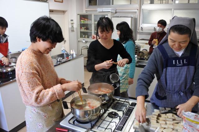 今日は防災訓練の一環として「炊き出し」のための調理実習を行いました。