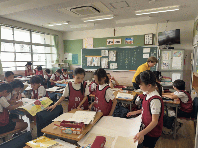言語の授業では、城星学園小学校の先生のインタビュー記事を作る授業が行われています。