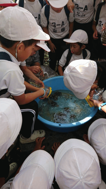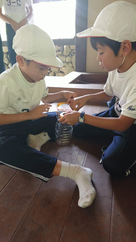 楽しく昼食をとって午後からはまた森の中に出かけます。大阪近郊の森の中でもいろいろな生き物がいるんですよ!