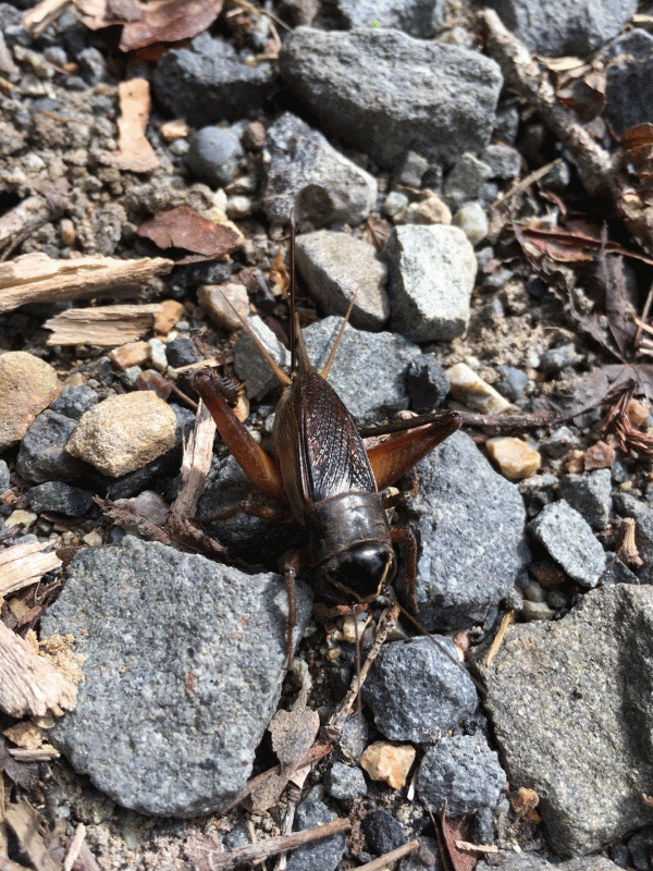 秋晴れの中みんなで元気に貝塚の森の中をオリエンテーリングです。足元をふと見るとコオロギの姿が・・・。みんなにびっくりして出てきたのかな?!