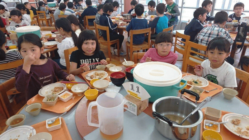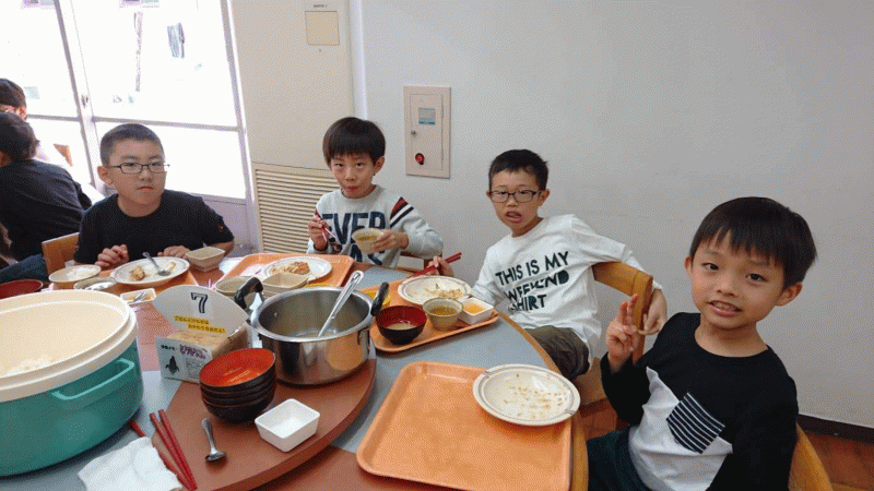 協力して食器を出したり、配膳をしたり、テーブルを拭いたりと自分たちのことは自分たちでやっていく3年生の姿です・・・。