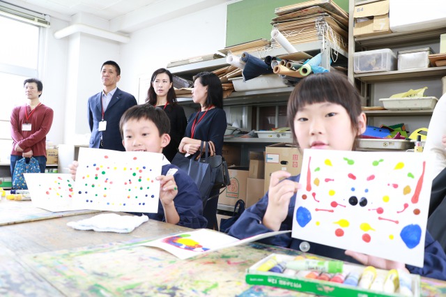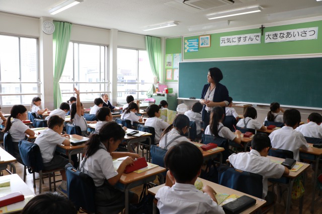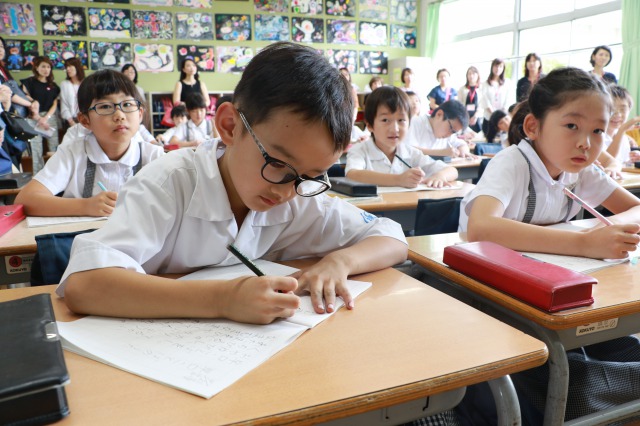 普段の子どもたちの授業の姿を見られる貴重な機会、でも子ども達も先生もちょっと緊張気味かな?