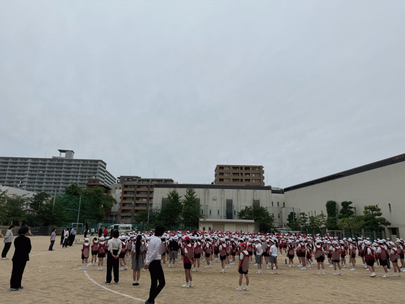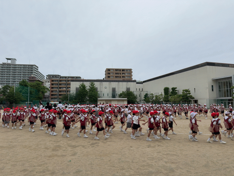 教室に戻るときも行進で戻ります。全員で足並みを揃えて、きびきびと歩きましょう!