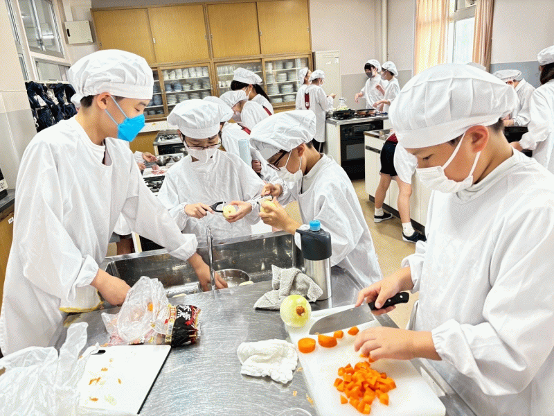 六年生が調理実習を行いました。チームに分かれて、いつもお世話に先生に心を込めて、メニューから考えました!