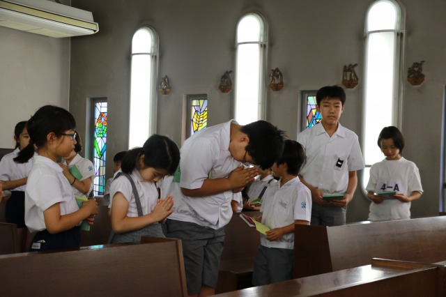全 3007 件(全602ページ) 過去のページもご覧いただけます ⇒ 前へ 306 | 307 | 308 | 309 | 310 | 次へ 2018/6/14 光の子集会 今日は光の子集会がありました。 3,4年生が聖マリア・ドメニカ・マザレロについて勉強したことを発表しています。 3,4年生が聖マリア・ドメニカ・マザレロについて勉強したことを発表しています。 全校児童が講堂に集まって、発表をききます。真剣なまなざしで聞いていますね。 全校児童が講堂に集まって、発表をききます。真剣なまなざしで聞いていますね。 発表する児童を舞台裏から見守ります。「次は私達の番だ!ドキドキ。。!」 発表する児童を舞台裏から見守ります。「次は私達の番だ!ドキドキ。。!」 最後はモルネーゼ賛歌を歌いました。優しい歌声が講堂いっぱいに響き渡っていました。 最後はモルネーゼ賛歌を歌いました。優しい歌声が講堂いっぱいに響き渡っていました。 光の子集会 2018/6/14 今日は光の子集会がありました。 3,4年生が聖マリア・ドメニカ・マザレロについて勉強したことを発表しています。 3,4年生が聖マリア・ドメニカ・マザレロについて勉強したことを発表しています。 全校児童が講堂に集まって、発表をききます。真剣なまなざしで聞いていますね。 全校児童が講堂に集まって、発表をききます。真剣なまなざしで聞いていますね。 発表する児童を舞台裏から見守ります。「次は私達の番だ!ドキドキ。。!」 発表する児童を舞台裏から見守ります。「次は私達の番だ!ドキドキ。。!」 最後はモルネーゼ賛歌を歌いました。優しい歌声が講堂いっぱいに響き渡っていました。 最後はモルネーゼ賛歌を歌いました。優しい歌声が講堂いっぱいに響き渡っていました。 2018/6/13 研究授業 社会の研究授業がありました。 大和川のつけかえについて勉強していました。 大和川のつけかえについて勉強していました。 真剣な表情です。大和川はどのようにしてできたのかな? 真剣な表情です。大和川はどのようにしてできたのかな? 気づいたところや自分の意見を発表しています。暗記するだけの社会ではなく、「もっと知りたい、もっと調べたい」という気持ちがくすぐられる授業でした。 気づいたところや自分の意見を発表しています。暗記するだけの社会ではなく、「もっと知りたい、もっと調べたい」という気持ちがくすぐられる授業でした。 研究授業 2018/6/13 社会の研究授業がありました。 大和川のつけかえについて勉強していました。 大和川のつけかえについて勉強していました。 真剣な表情です。大和川はどのようにしてできたのかな? 真剣な表情です。大和川はどのようにしてできたのかな? 気づいたところや自分の意見を発表しています。暗記するだけの社会ではなく、「もっと知りたい、もっと調べたい」という気持ちがくすぐられる授業でした。 気づいたところや自分の意見を発表しています。暗記するだけの社会ではなく、「もっと知りたい、もっと調べたい」という気持ちがくすぐられる授業でした。 2018/6/12 理科室 休憩時間の理科室で、何やら実験をしている姿を発見! 休憩時間の理科室で、何やら実験をしている姿を発見! 授業でする実験とは少し違う内容に、興味津々です。 授業でする実験とは少し違う内容に、興味津々です。 城星っ子は、どんなことにも真剣にそして全力で取り組みます。 城星っ子は、どんなことにも真剣にそして全力で取り組みます。 理科室 2018/6/12 休憩時間の理科室で、何やら実験をしている姿を発見! 休憩時間の理科室で、何やら実験をしている姿を発見! 授業でする実験とは少し違う内容に、興味津々です。 授業でする実験とは少し違う内容に、興味津々です。 城星っ子は、どんなことにも真剣にそして全力で取り組みます。 城星っ子は、どんなことにも真剣にそして全力で取り組みます。 2018/6/11 植物の観察 理科室横のベランダで植物の観察をしている子がいました。 何の植物を育てているのかな? 何の植物を育てているのかな? 「ひょうたん」と「へちま」を育てているようです。 「ひょうたん」と「へちま」を育てているようです。 「早く大きくなってね。」植物に対して優しくできる人はきっと人のことも大切にできますね。 「早く大きくなってね。」植物に対して優しくできる人はきっと人のことも大切にできますね。 植物の観察 2018/6/11 理科室横のベランダで植物の観察をしている子がいました。 何の植物を育てているのかな? 何の植物を育てているのかな? 「ひょうたん」と「へちま」を育てているようです。 「ひょうたん」と「へちま」を育てているようです。 「早く大きくなってね。」植物に対して優しくできる人はきっと人のことも大切にできますね。 「早く大きくなってね。」植物に対して優しくできる人はきっと人のことも大切にできますね。 2018/6/8 祈りの集い 毎週金曜日は学校内にある小聖堂で「祈りの集い」があります。 今日は「あなたがたは、地の塩、世の光。」という聖書の箇所から、