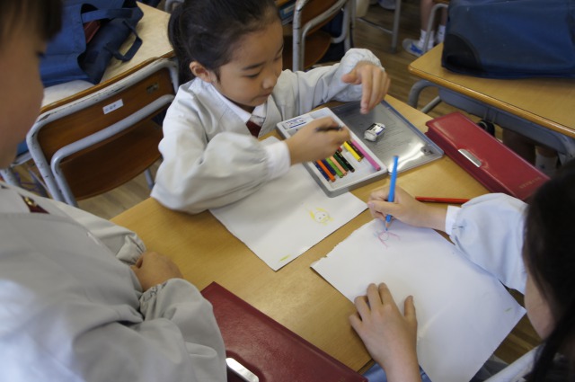 そんな中でも教室でお絵かきをして