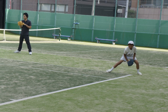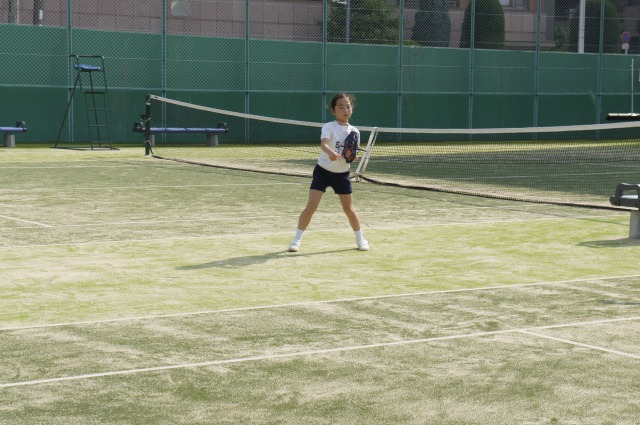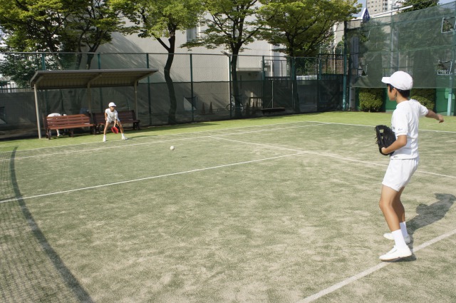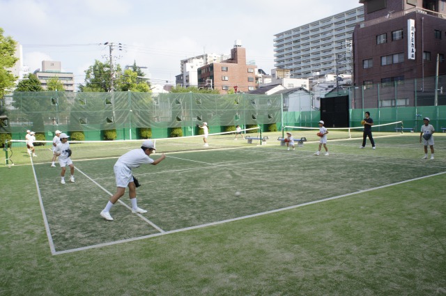 テニスコートで練習をしています。