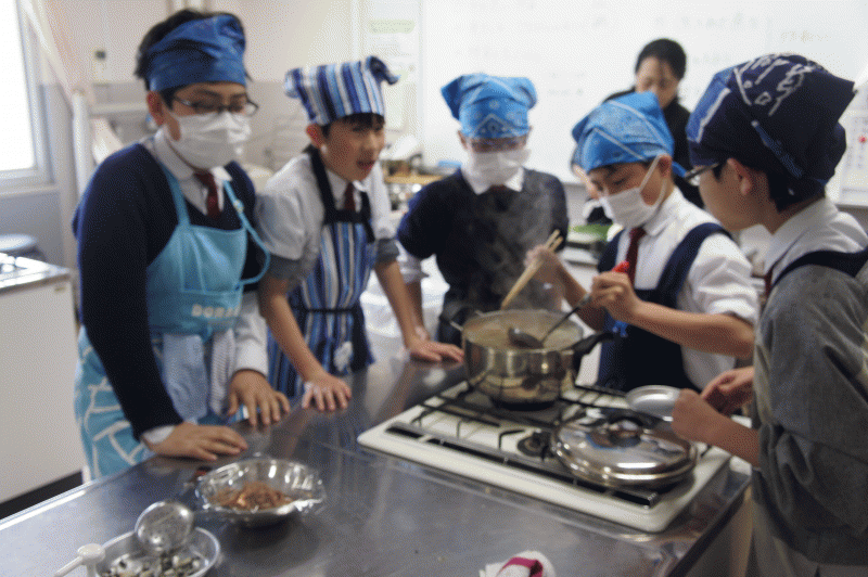 男子は最後の調理実習「豚汁」を作りました。
