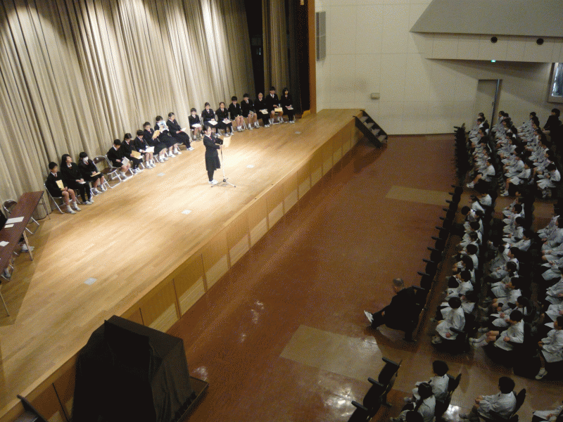 今日、女子は宗教のまとめとして練成会を行いました。
