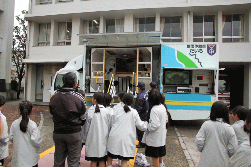 「起震車」で、地震の揺れを体験しました。