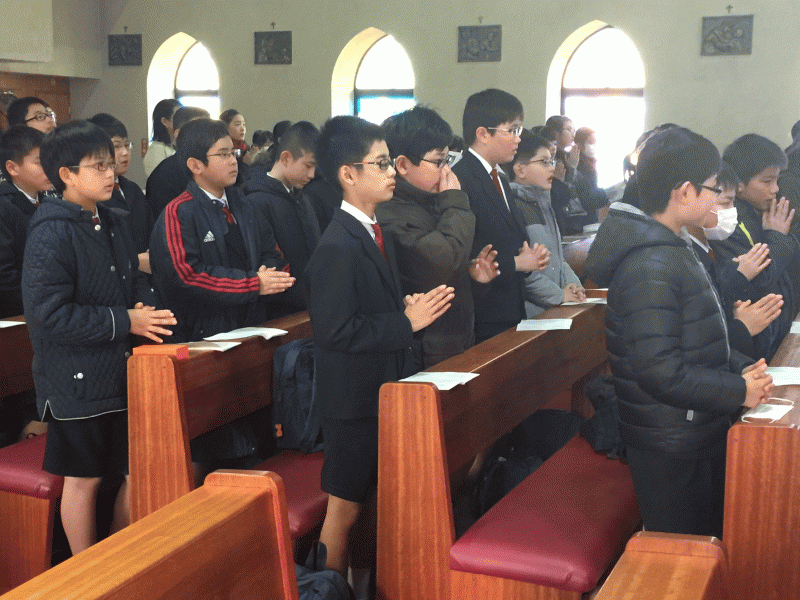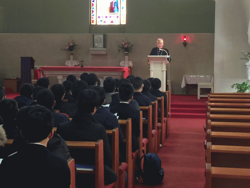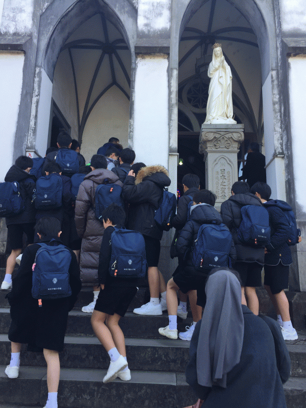 神父様から大浦教会の歴史について教えていただき,最後に祝福をしていただきました。