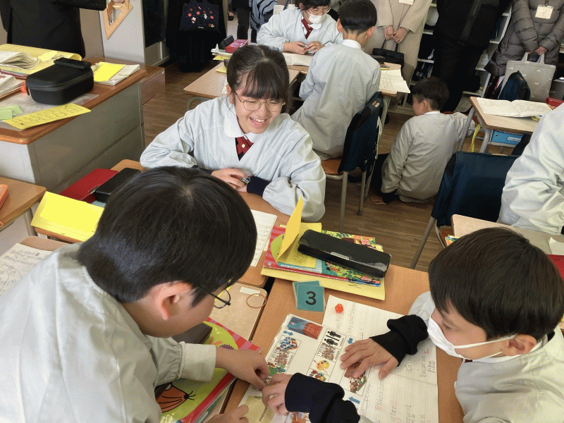 集中して話をきいてノートを書く姿や、元気いっぱいにグループ活動をする姿など、キラキラした子どもたちの姿を見ていただくことができました。