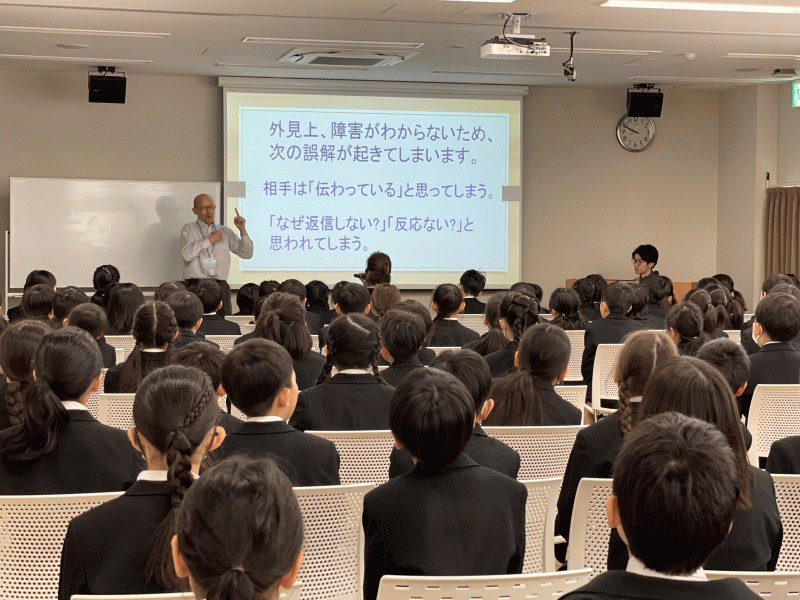 3・4年生はカリタスタイムで、聴覚障がいに関する講話をききました。