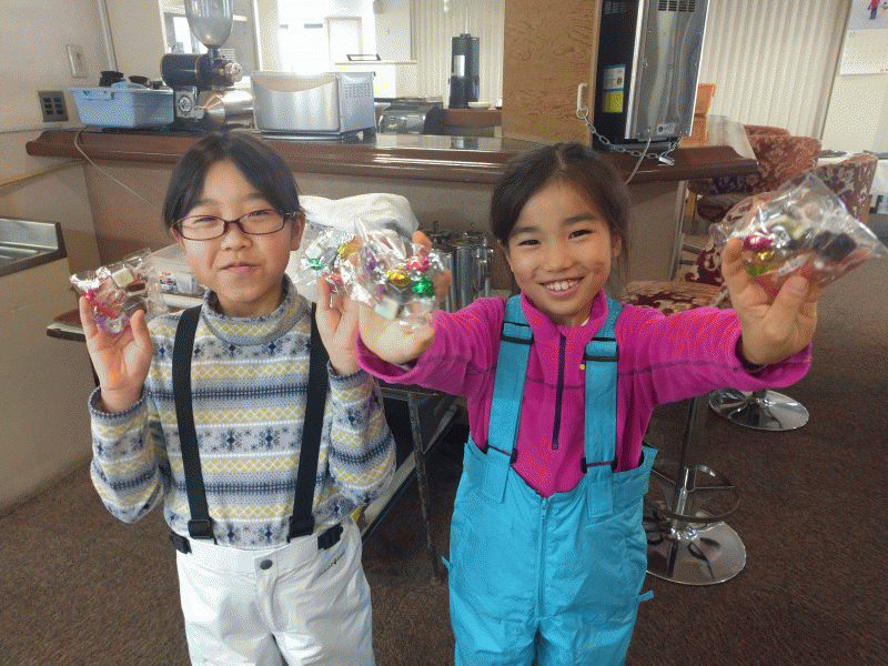 校長先生がお菓子を子どもたち一人ひとりにプレゼントしてくれました。疲れたときは甘い物を補給しよう!