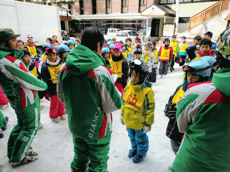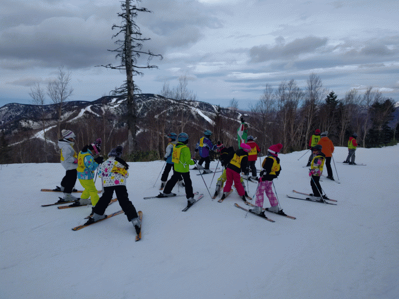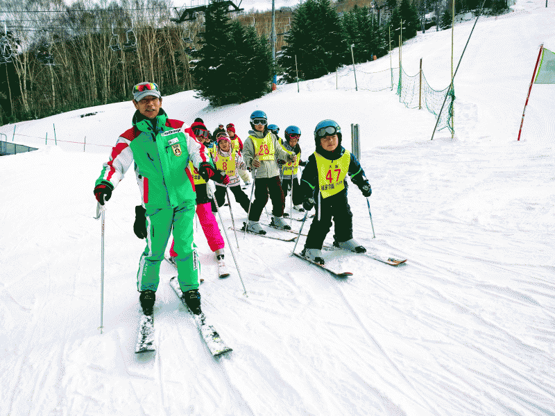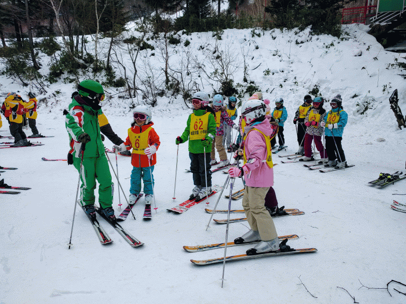 スキーの上達に向け、みんな熱心にコーチの指導についていきます。